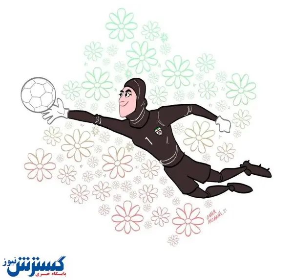 عمر مومنی کارتونیست مطرح سایت گل از زهره کودایی دروازه بان تیم فوتبال زنان ایران کاریکاتور کشید.