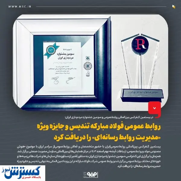بیستمین کنفرانس بینالمللی روابطعمومیایران با حضور متخصصان و فعالان روابطعمومیاز سراسر ایران با موضوع «هوش مصنوعی مولد و روابطعمومی: ارتباطات آینده» نهم اسفند ۱۴۰۲ در مرکز همایشهای بینالمللی سازمان مدیریت صنعتی برگزار شد. همچنین همزمان با برگزاری این کنفرانس، سومین جشنواره مردمداری ایران، به منظور تقدیر از دستاوردهای سازمانها و شرکتها در زمینهها و حوزههای مختلف روابطعمومی برگزار شد و روابط عمومی شرکت فولاد مبارکه در این رویداد بین المللی به تنهایی تندیس و جایزه ویژه «مدیریت روابط رسانهای» را دریافت کرد.
