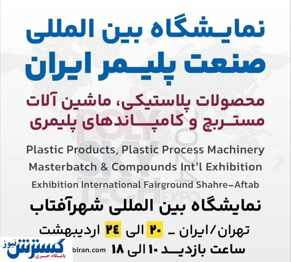 نمایشگاه صنعت پلیمر ایران (محصولات پلاستیکی، ماشین آلات،مستربچ و کامپاندهای پلیمری ایران) یا Poly Sky Tech Expo ۲۰۲۴ از ۲۰ تا ۲۴ اردیبهشت ماه ۱۴۰۳ در محل برگزاری نمایشگاه های شهرآفتاب برگزار می شود.
