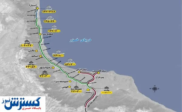 حمل بار از فنلاند به تایلند و بالعکس از طریق ناوگان دریایی ۴۵ روز زمان می‌برد در حالی که با تکمیل راه‌آهن رشت - آستارا این مسیر به صورت دریایی - ریلی به ۲۱ روز کاهش خواهد یافت.