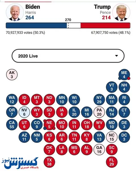 بین‌الملل فاکس نیوز: آرا جو بایدن به ۲۶۴ رسید