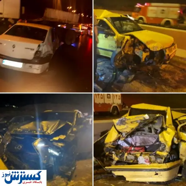 راننده یک دستگاه کشنده تریلر در آزادراه تهران_پردیس قیچی کرد و باعث تصادف زنجیره وار ۵ خودروی سواری با یکدیگر شد.