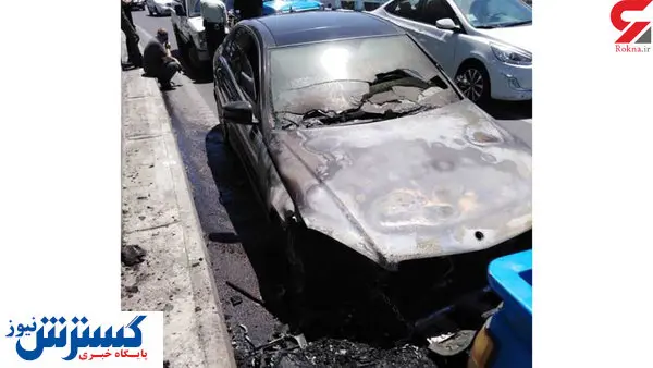 آتش گرفتن مرسدس بنز لاکچری در تهران/ عکس