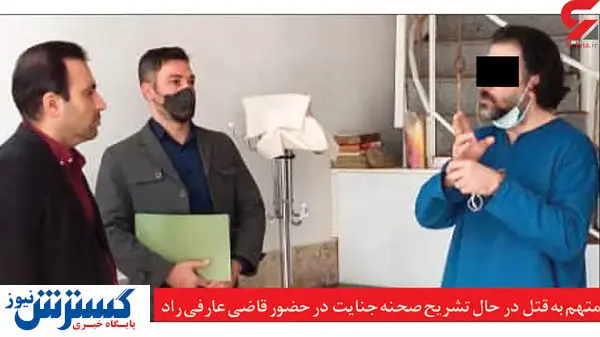 در بازسازی صحنه جنایت که سرهنگ کارآگاه ولی نجفی (رئیس دایره قتل عمد پلیس آگاهی خراسان رضوی) نیز حضور داشت، ابتدا کارآگاه منفرد به تشریح خلاصه ای از محتویات پرونده و اعترافات متهمان در مراحل بازجویی های مقدماتی پرداخت و سپس با دستور قاضی شعبه ۲۱۱ دادسرای عمومی و انقلاب مشهد، همسر سابق مقتول و همسر فعلی قاتل، مقابل دوربین قوه قضاییه ایستاد تا ناگفته های قتل هولناک همسرش را بیان کند.