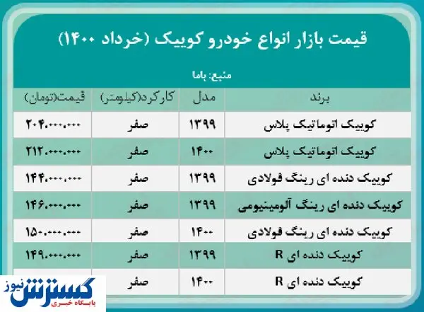 با حدود ۱۵۰ الی ۲۰۰ میلیون تومان میتوان انواع خودروهای کوییک از جمله معمولی و اتومات را خریداری کرد. قیمت این محصول در طول حدود ۶ ماه اخیر تغییرات چندانی نداشته است.