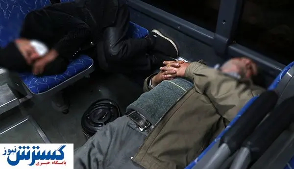 ساعت ۲۳:۴۵ دقیقه و دمای هوا سه درجه سانتی‌گراد است. یکی یکی به ایستگاه اتوبوس می‌آیند، پیر، جوان و حتی کودک! سامانه اتوبوس تندروی تهران هر شب میزبان آنهاست. یکی از ساعت ۱۲ شب به اتوبوس پناه می‌برد و آن یکی ساعت یک صبح. بستگی به سردی هوا دارد.
