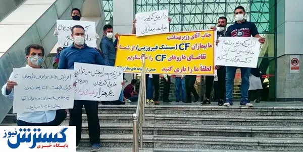 عدهای از بیماران مبتلابه CF در مقابل وزارت بهداشت تجمع اعتراض گونهای را داشتند. اختلال سیستیک فیبروزیس یا CF ناشی از نقص در یکی از ژنها است که باعث تأثیر بر ورود و خروج کلرید سدیم از سلولهای بدن میشود. این وضعیت میتواند منجر به تولید مخاط غلیظ، چسبنده، عرق شور و درنتیجه بروز مشکلات دیگر گردد.