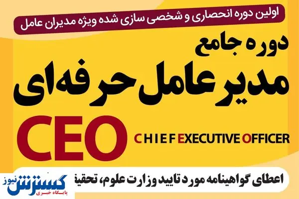 دوره جامع مدیرعامل حرفهای CEO کاملا شخصیسازی شده و با مجوز رسمی وزارت علوم تحقیقات و فناوری با سرفصلهای انحصاری در موسسه آموزش عالی آزاد دانش پژوهان به عنوان مجری رسمی دوره برگزار میگردد. در پایان دوره به دانش آموختگان گواهینامه مورد تایید وزارت علوم با قابلیت ترجمه اعطا میشود.