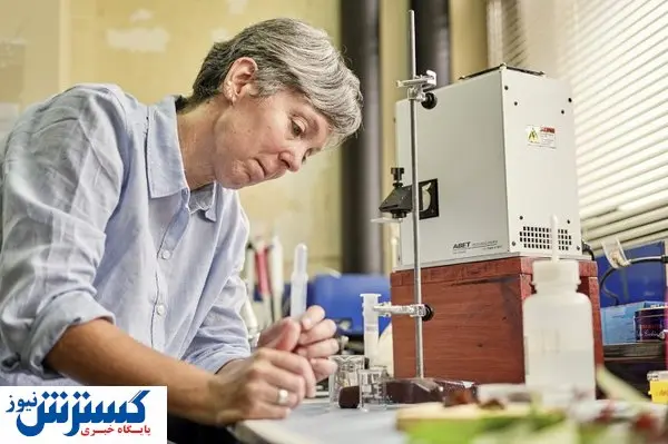 در این تصویر من در حال تصفیه عصاره گیاه فردوسی هستم. هنگامی که در این فرایند رنگهای قرمز روشن را حذف میکنم، میتوانم کارایی آنها را در تبدیل نور خورشید به انرژی را اندازهگیری کنم که برای انجام این کار نیز از یک شبیهساز خورشیدی استفاده میکنم. در تصویر شبیهساز من همان جعبه خاکستری و یک جعبه سیاه کوچک کنار آن است.