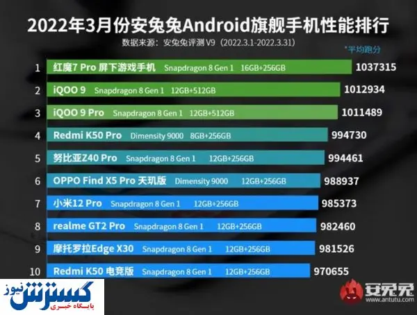 قدرتمندترین گوشیهای ماه مارس ۲۰۲۲