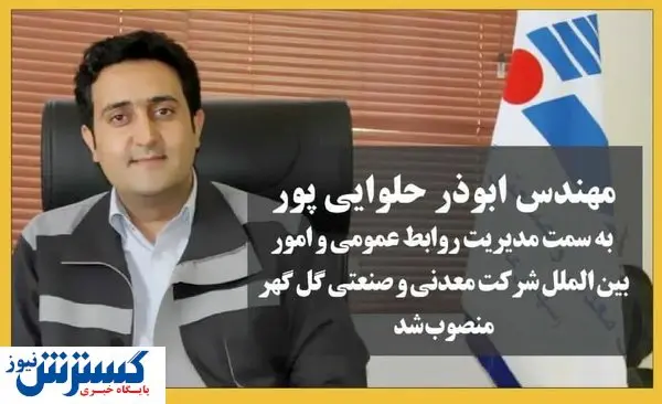 ابوذر حلوایی پور به عنوان مدیرکل روابط عمومی و امور بینالملل شرکت معدنی و صنعتی گلگهر منصوب شد.
