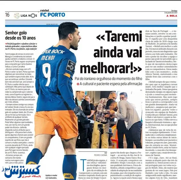 روزنامه «ابولا» پرتغال در همین ارتباط گفتوگویی را با علیرضا (علیشاه) طارمی پدر مهدی طارمی انجام داده است. پدر طارمی با اشاره به تواناییهای مهدی تاکید کرده است که برایش روشن بوده این بازیکن به ترکیب اصلی پورتو میرسد و پیشرفتش ادامه خواهد داشت.
