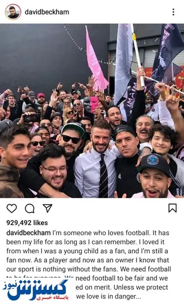 بکام در اینستاگرام خود نوشت: "من کسی هستم که عاشق فوتبالم. از زمانی که یادم میآید فوتبال زندگی من بوده است. من از زمانی که بچه کوچکی بودم به عنوان یک هوادار عاشق فوتبال بودم و اکنون هنوز هم یک هوادار هستم. به عنوان یک بازیکن و حالا به عنوان مالک باشگاه میدانم که ورزش ما بدون تماشاگران هیچ است.