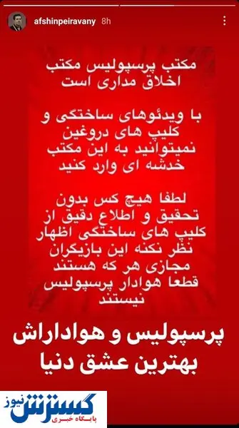 افشین پیروانی سرپرست تیم پرسپولیس به انتشار ویدیوی کودک آزاری هوادار استقلال واکنش نشان داد.