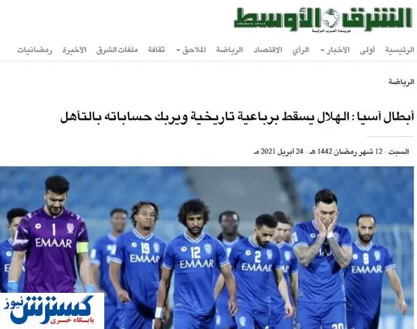 روزنامه «الریاضیه» عربستان با عنوان رسوایی و افتضاح از این باخت سنگین یاد کرده و نوشته است که این چهارمین باخت الهلال در آسیا با چهار گل است.