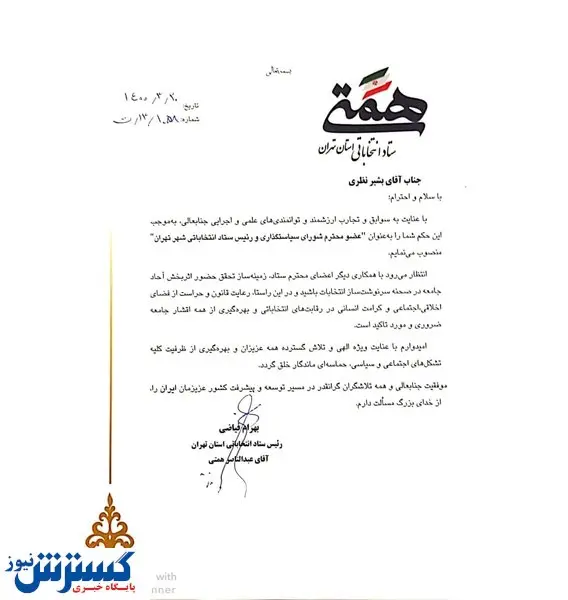 حجت (بشیر) نظری، عضو هیات مدیره و سخنگوی باشگاه استقلال طی حکمی به عنوان رئیس ستاد انتخاباتی عبدالناصر همتی در شهر تهران انتخاب شد.