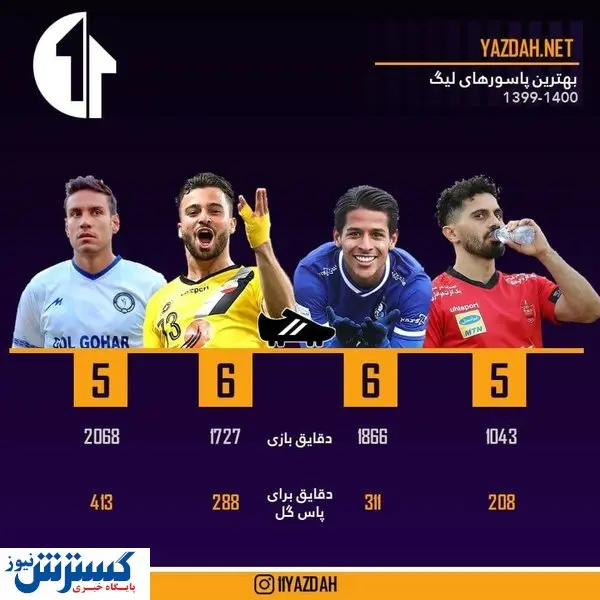اگر بخواهیم برحسب میزان بازی در ترکیب تیم حساب کنیم، کاپیتان دوم باتجربه پرسپولیس بهترین پاسور لیگ است، چرا که او در خط حمله پرستاره پرسپولیس فرصت زیادی برای بازی در لیگ امسال پیدا نکرده و همچنین مصدومیت هم مانعی برای دوری او از ترکیب بوده، در ۱۰۴۳ دقیقه حضور در ترکیب پرسپولیس توانسته ۵ پاس گل بدهد و میانگین ۲۰۸ را به ثبت برساند.