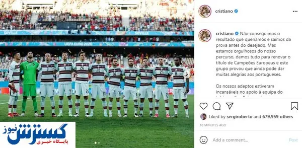 کاپیتان تیم ملی پرتغال با انتشار پستی در اینستاگرام، از حمایت هواداران تیم ملی پرتغال در طول رقابتهای یورو ۲۰۲۰ تشکر کرد.
