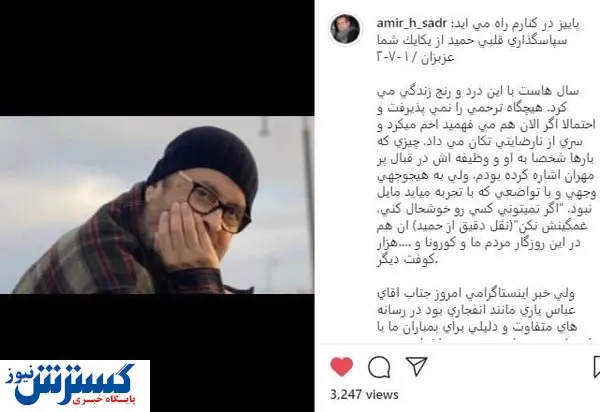 در عینحال متنی که امیرحسین صدر منتشر کرده، نکات جالبی در خود دارد و بخشی از آن هم گلایهآمیز است که البته خود عباس یاری در کامنتها درباره اینکه چرا این خبر را منتشر کرده، پاسخی مجدد قلمی کرده است.