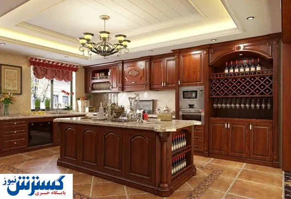 قیمت کابینت روکش چوب در سبکهای دکوراسیونی کلاسیک و نئوکلاسیک متفاوت است، چرا که طرح کابینت در هر کدام از این سبکها ویژگیهای منحصر به فردی دارد. به عنوان مثال، کابینت روکش چوب سبک کلاسیک دارای کندهکاری و منبتکاریهای زیادی است؛ درنتیجه همین پیچیدگیِ طرحها در سبک کلاسیک، باعث افزایش قیمت کابینت روکش چوب کلاسیک میشوند. نمونهای از کابینت روکش چوب سبک کلاسیک را در تصویر زیر مشاهده میکنید.