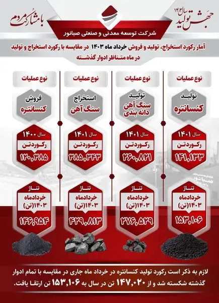 درخشش شرکت توسعه معدنی و صنعتی صبانور دراستخراج، تولید وفروش خردادماه۱۴۰۳