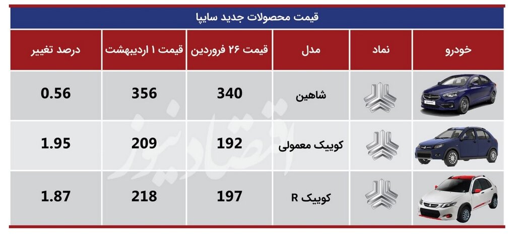 «ساینا» دیگر محصول گروه خودروسازی سایپا نیز این هفته چهار میلیون تومان گران شد و ۲۰۴ میلیون تومان به فروش رفت.