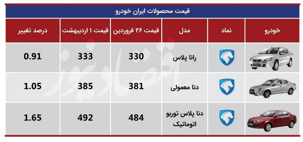 در میان سایر خودروهای پرطرفدار بازار، «دنا پلاس توربو» هشت میلیون افزایش قیمت یافت و ۴۹۲ میلیونی شد. «دنا معمولی» افزایش قیمت چهار میلیونی را ثبت کرد تا با قیمت ۳۸۵ میلیون تومان به دست دوستدارانش برسد. «رانا پلاس» دیگر خودروی پرطرفدار بازار که هفته قبل تنها خودرویی بود که ثبات قیمت داشت، این هفته افزایش قیمت سه میلیون تومانی را تجربه کرد و ۳۳۳ میلیون تومان قیمت خورد.